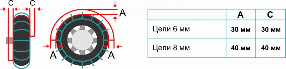 при использовании цепей запрещается резкое начало движения и резкое торможение, так как это ведет к быстрому износу цепей.