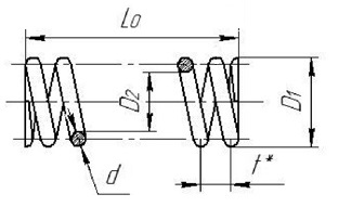 d, мм D1, мм L0, мм Число рабочих витков n Число полных витков n1