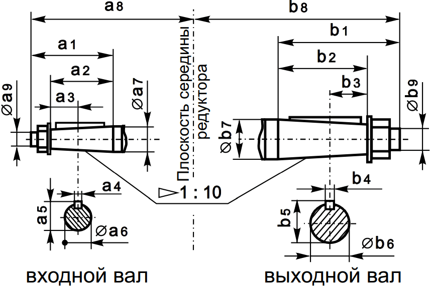 Размеры конца тихоходного вала для присоединения приборов и автоматики