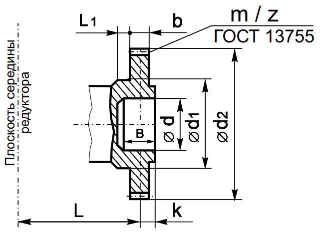 Размеры концов тихоходных валов в виде зубчатой полумуфты