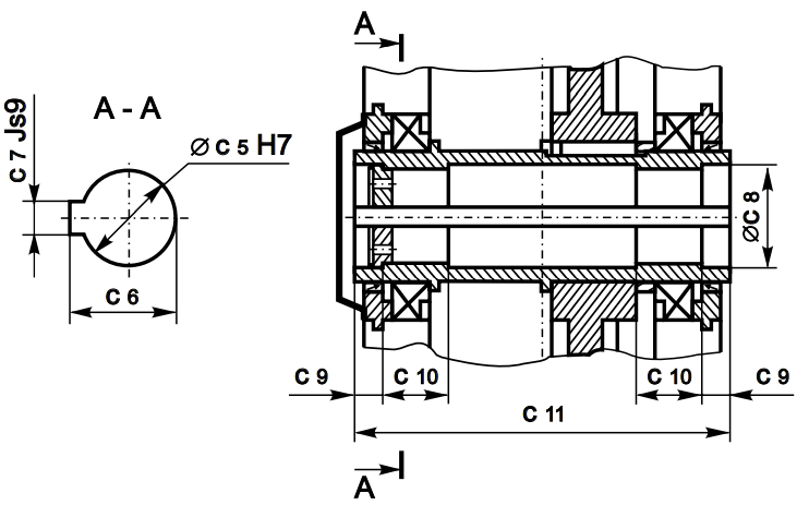 Номинальная радиальная консольная нагрузка, приложенная в середине посадочной поверхности выходного конца быстроходного вала, Н